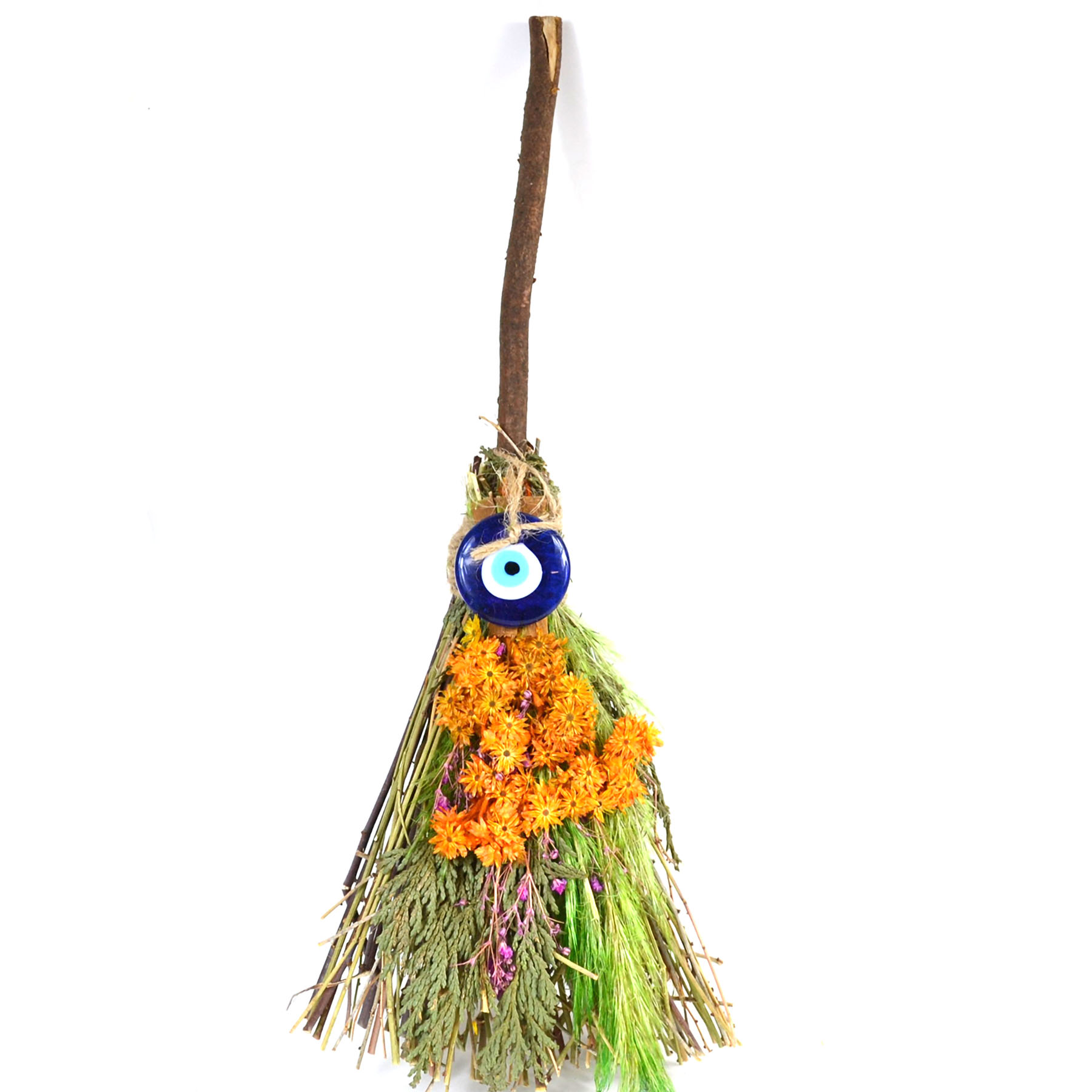 Sweep away negative energy and purify your sacred space with our hand held altar broom, featuring a glass evil eye charm. Crafted beautifully with care and attention to detail, using natural botanical's, this broom is the perfect addition to any altar or ritual space. Length is approximately 11" however sizes will vary slightly
