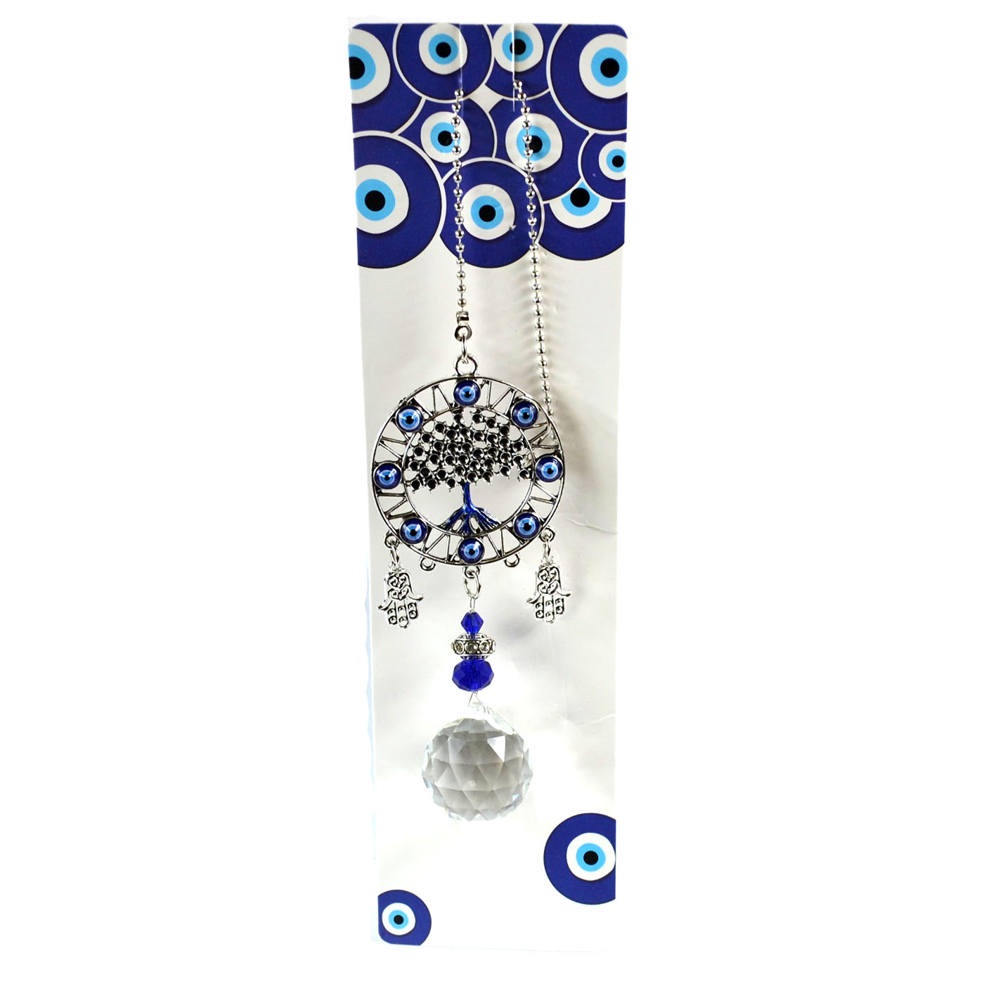 13 1/4" Tree Of Life & Faceted Crystal evil eye wall hanging
