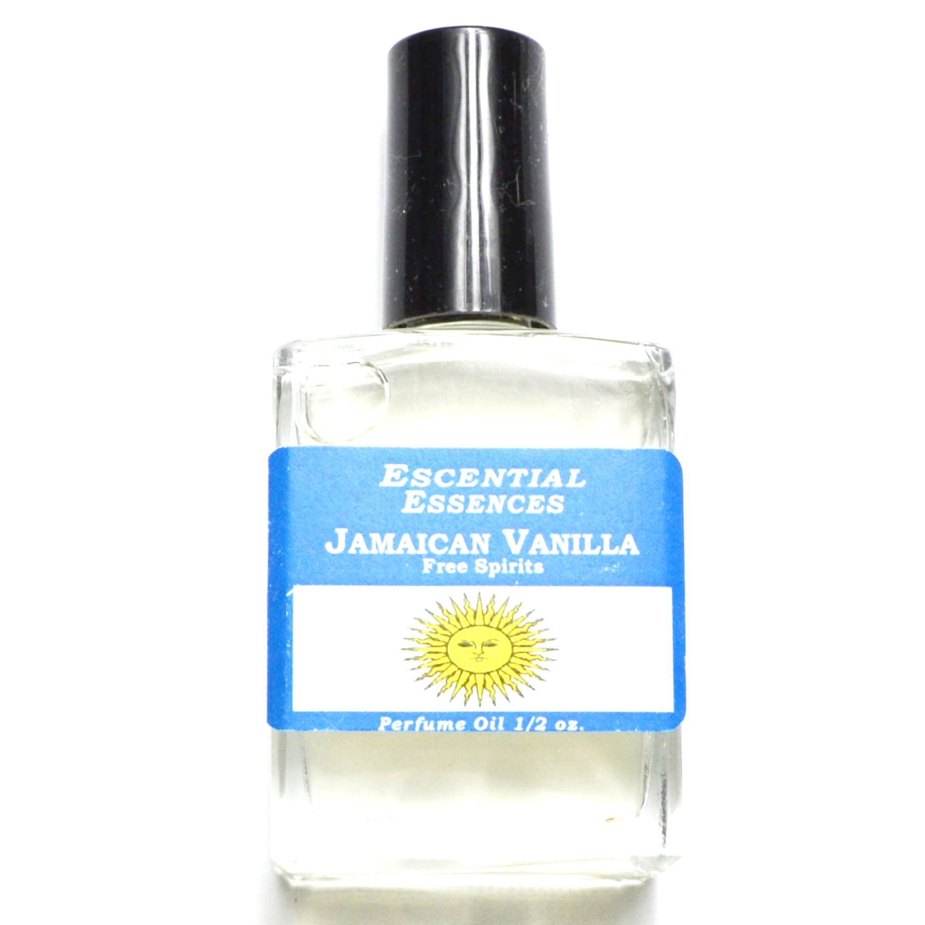 Escential Essences 1/2oz Bottle of Jamaican Vanilla, free spirit. For paradise, harmony, joy euphoria, rainbows, isle of enchantment. Made and blended in the USA with cosmetic grade skin-safe oils.