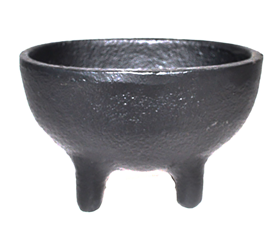 A sturdy mini cauldron with a deep pot, perfect for burning incense, resins, or herbs. Its durable cast iron design ensures lasting use and even heat distribution for your rituals or decor.