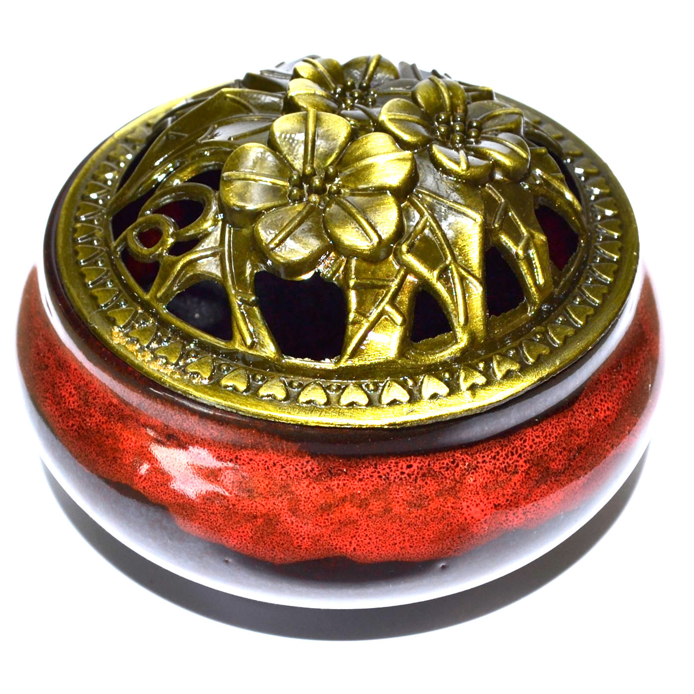 Lava colored ceramic burner with a floral lid. Add a touch of elegance to your rituals