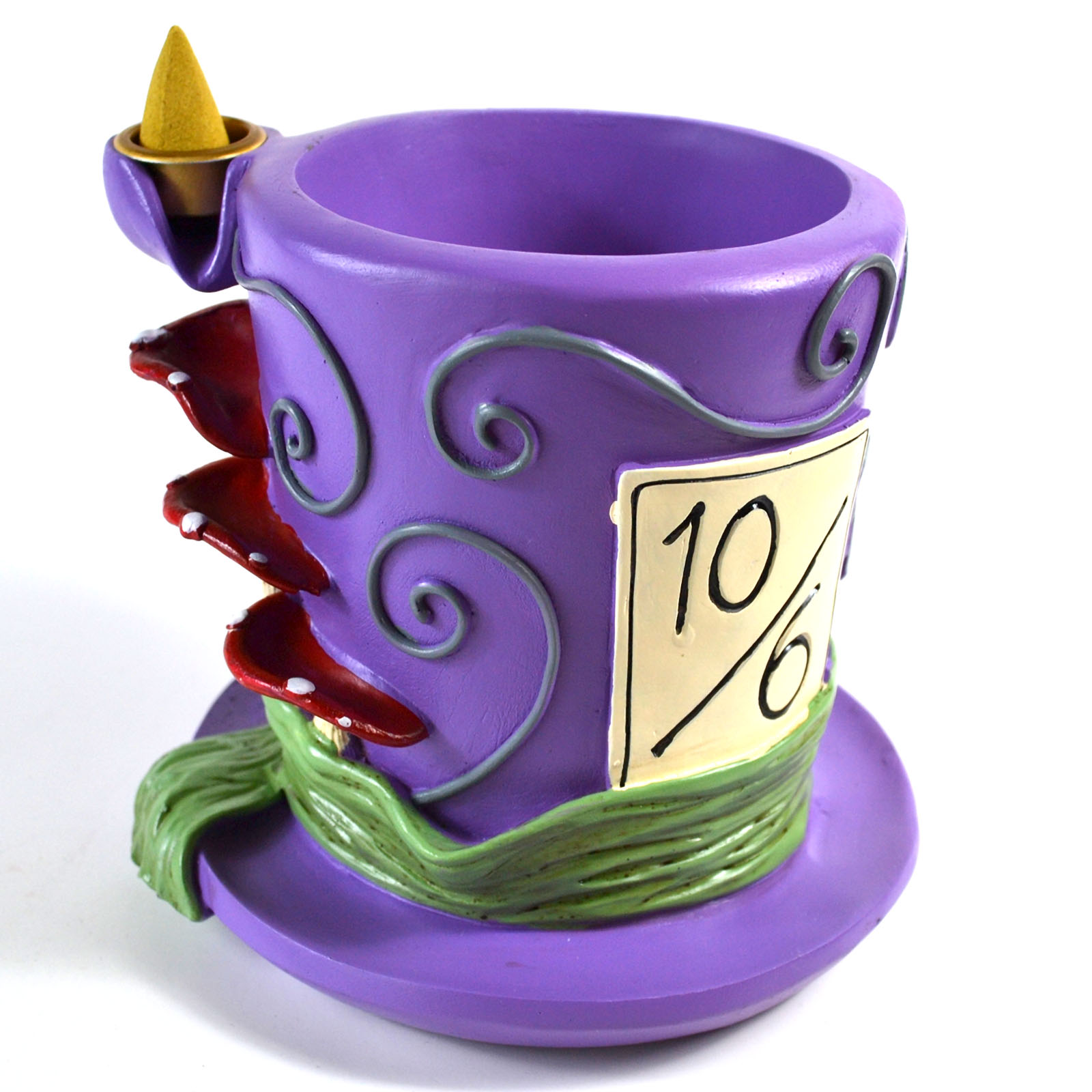 Mad Hatter Hat Backflow Incense Burner. Light a backflow cone and watch the smoke tumble magically from the top of the hat. This fun piece captures the essence of wonderland.