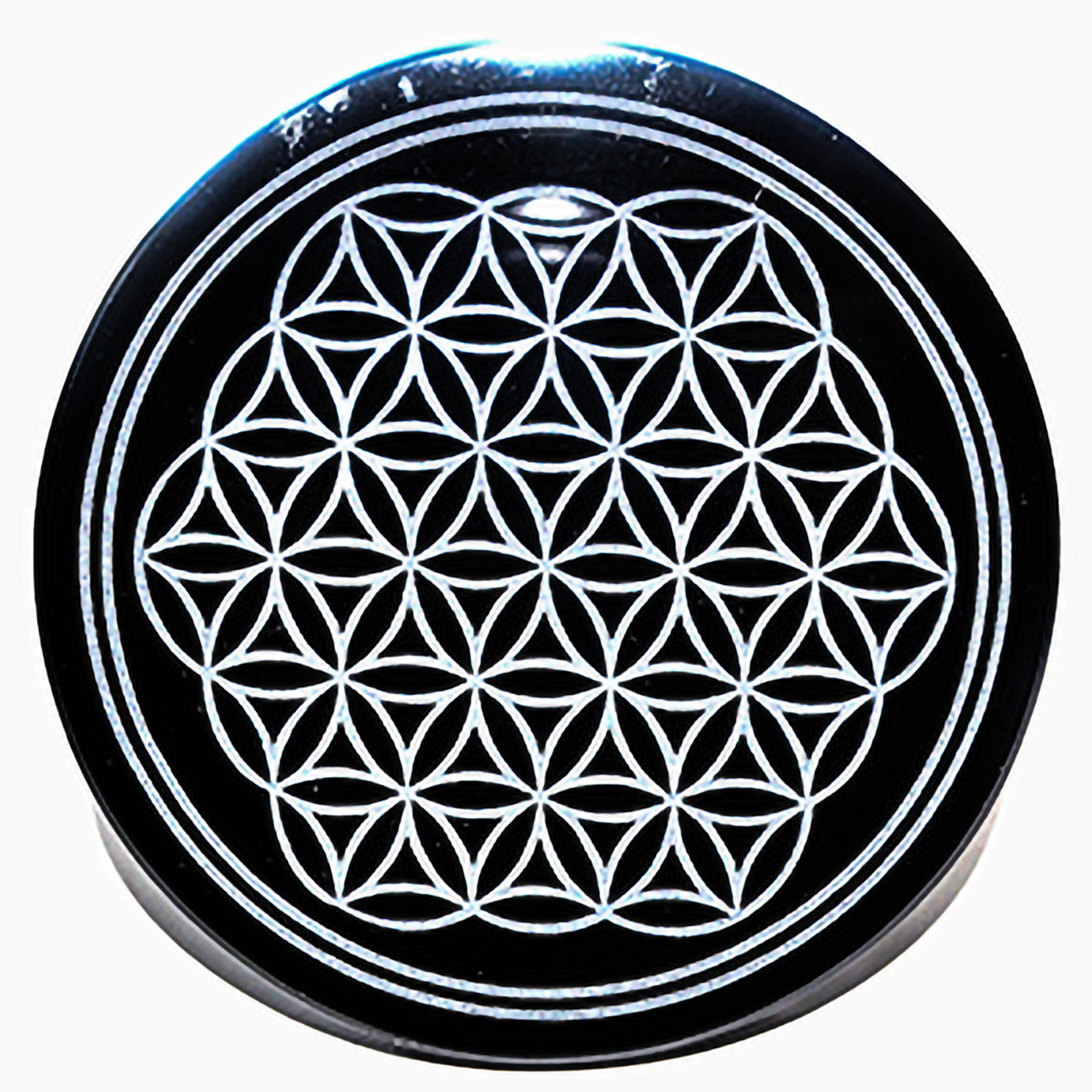 This Black Obsidian altar tile is etched with a Flower of Life to show the connection in everything. Black Obsidian may assist you with staying grounded, unbalanced energy, stimulate your intuition, divination, and to keep your energy clean and protected. Makes a powerful crystal grid as well. 4" Sizes, shapes, colors and inclusions may vary within each tile. From Pakistan.