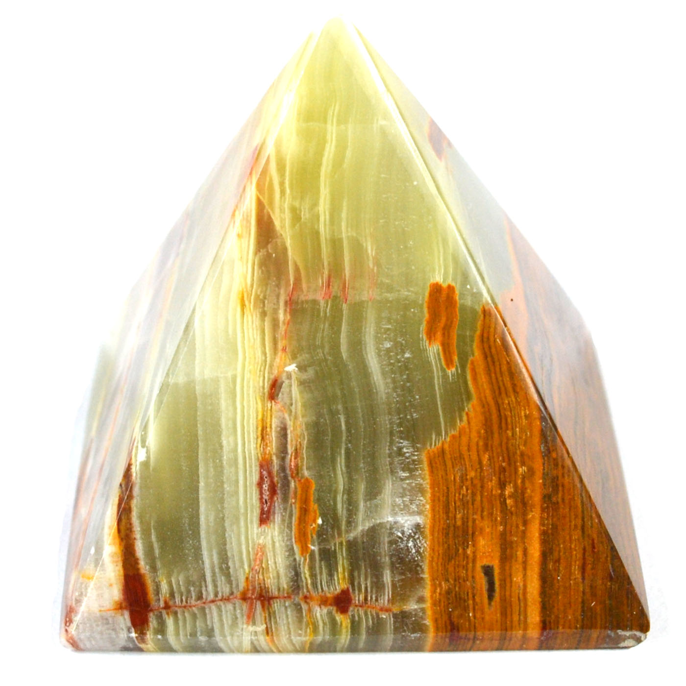 Carved from green onyx, this 45–50mm pyramid is a striking piece of both decor and energy work. Known for its grounding and protective qualities, onyx is believed to absorb negative energy and promote strength and stability.
