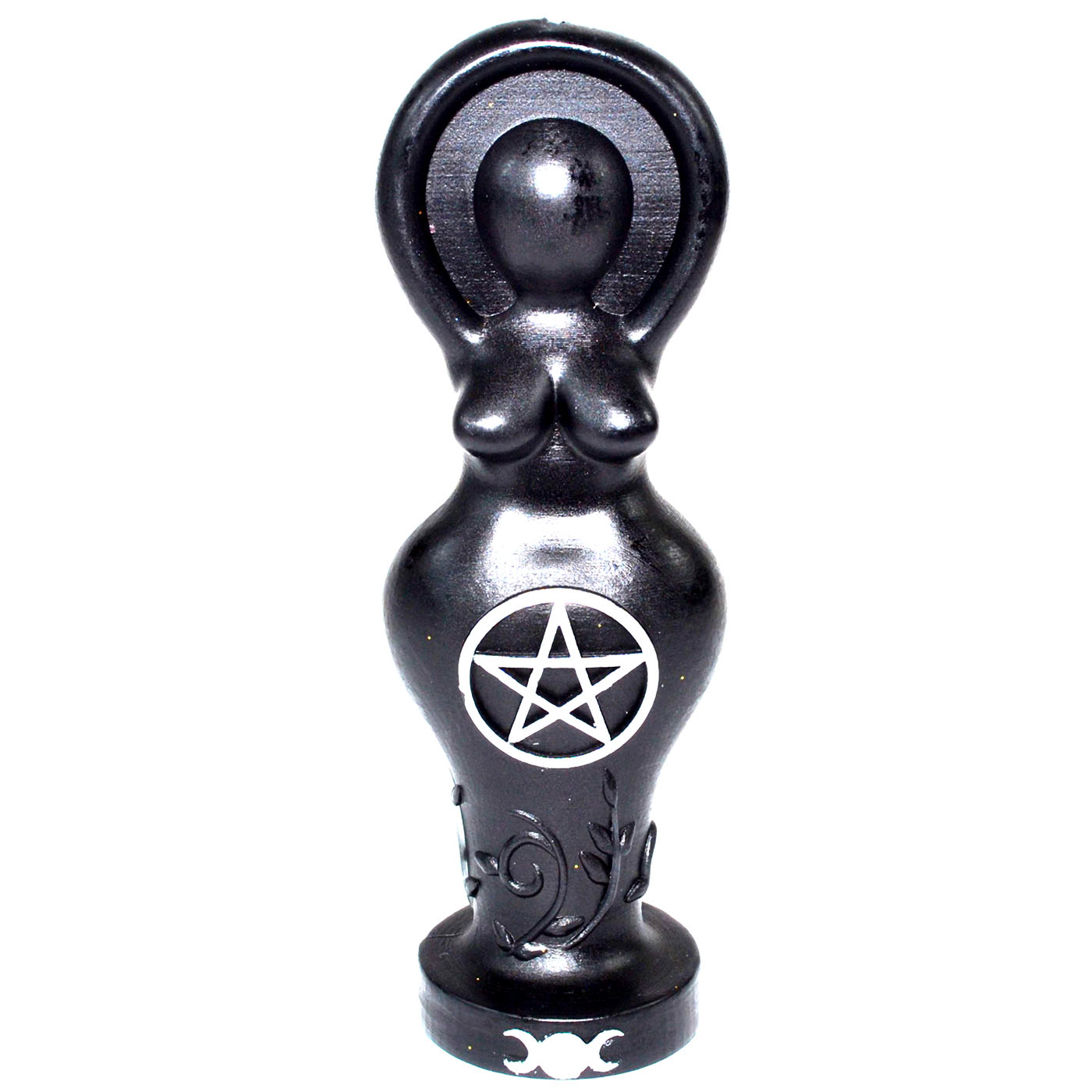 A black candle cast in the shape of the Goddess, embodying feminine power, mystery, and sacred presence. Standing 5.85" tall, offering a 5–8 hour burn time.