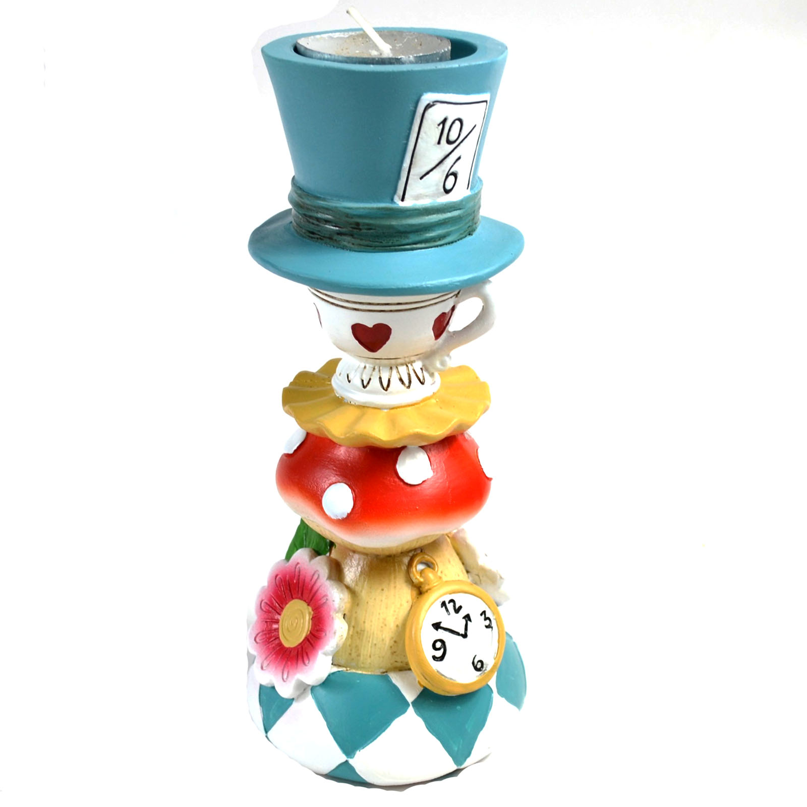 Step into a whimsical world with this towering Wonderland-inspired tealight holder.Tealight sits at the very top inside the hat, casting a warm, enchanting glow over its playful, fantastical structure.