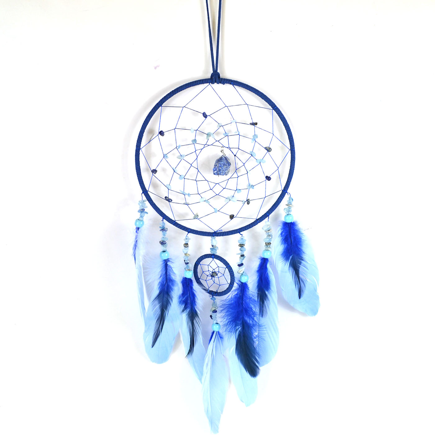 6 3/4" x 22" Lapis & Aquamarine dreamcatcher