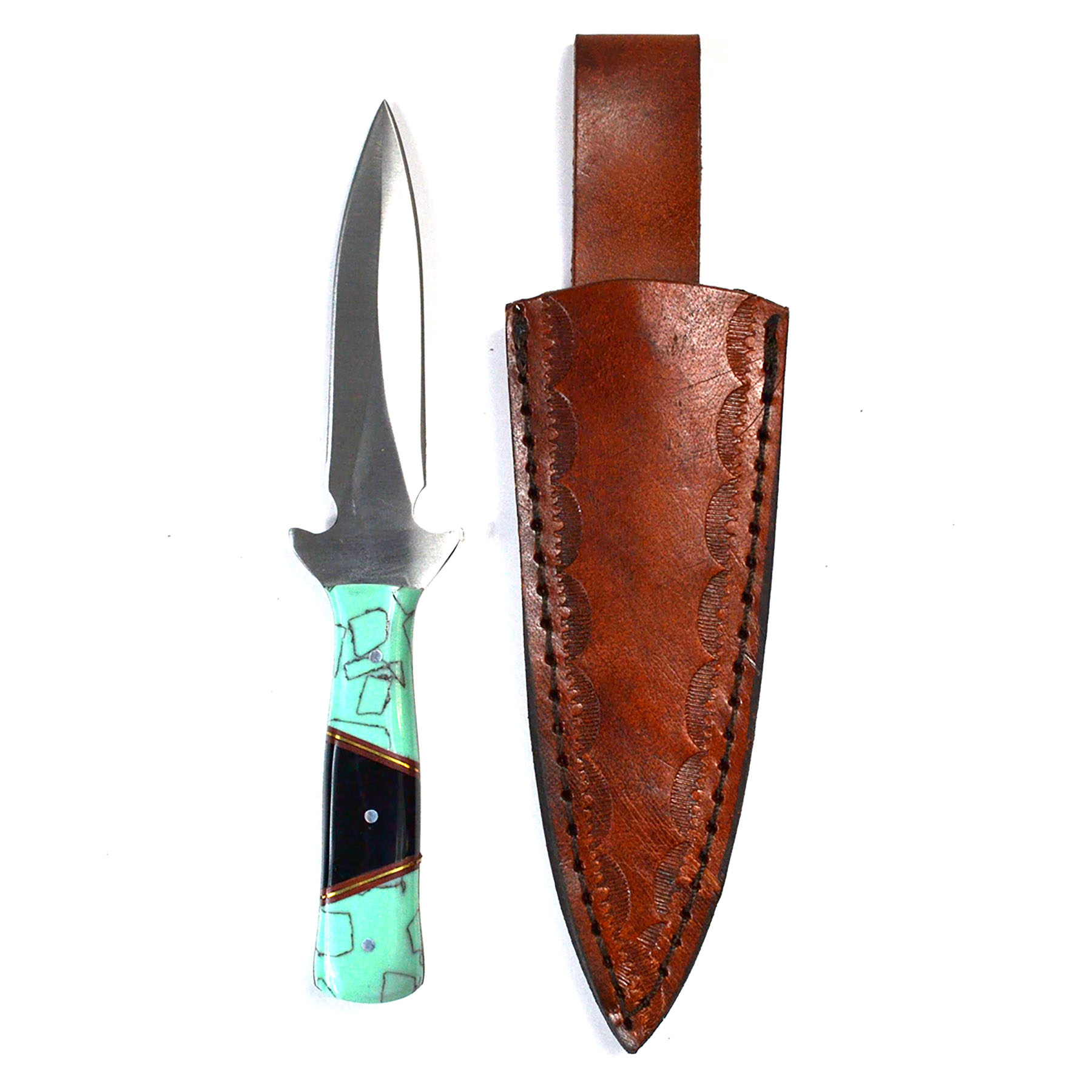 This Turquoise and Black Handled Athame is a striking ritual tool designed for focused intention and ceremonial work. Measuring 7 inches in overall length, it features a durable stainless steel blade paired with a smooth, balanced handle in turquoise and black tones. Included is a leather sheath for safe storage and protection when not in use, making it easy to carry or keep on your altar.