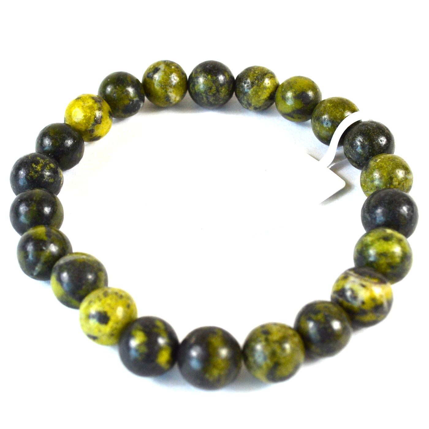 Serpentine 8mm beaded bracelet featuring earthy green tones and unique patterns. Known for its connection to awakening, it supports transformation, clears energetic blockages, and encourages a deeper connection to nature and inner wisdom.