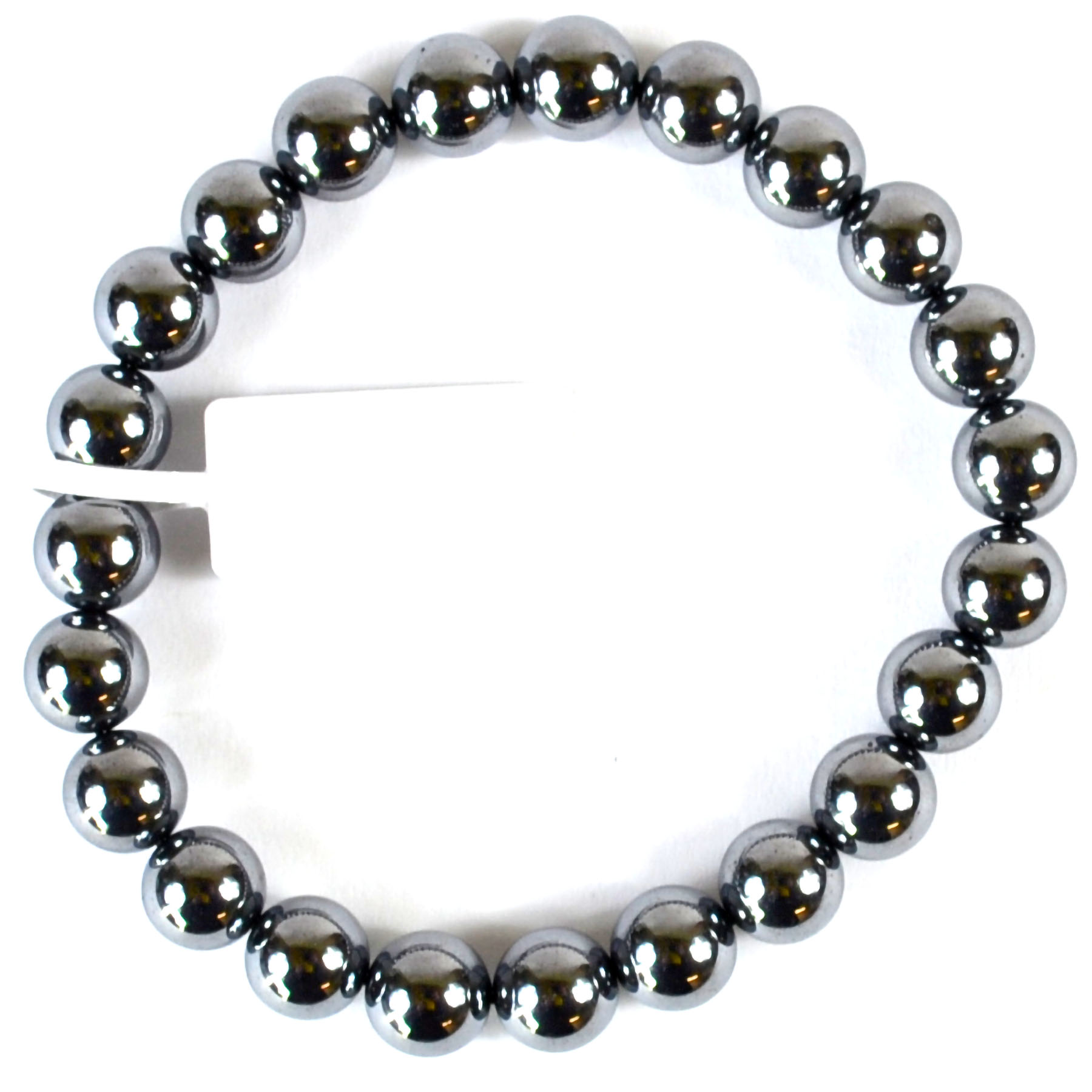 An 8mm Terahertz bracelet, featuring striking metallic beads known for boosting mental clarity, energy balance, and overall vitality.
