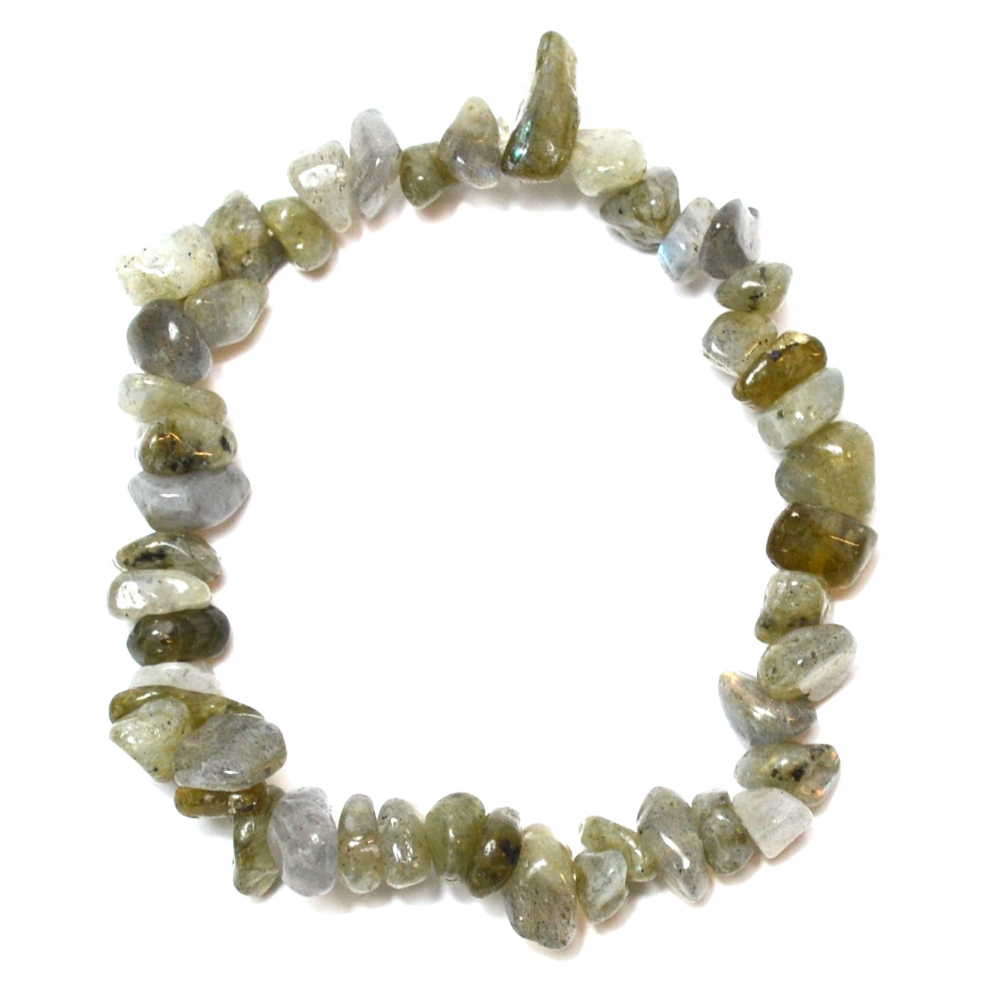 A stress relieving Labradorite chip bracelet, known for replacing tension with enthusiasm