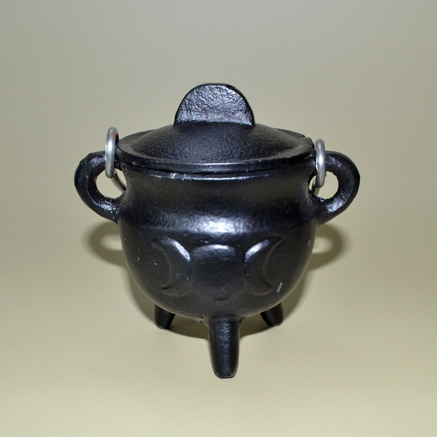 Just the right size cauldron for your burning needs, featuring a triple moon symbol on the front. Comes with a lid and handle
