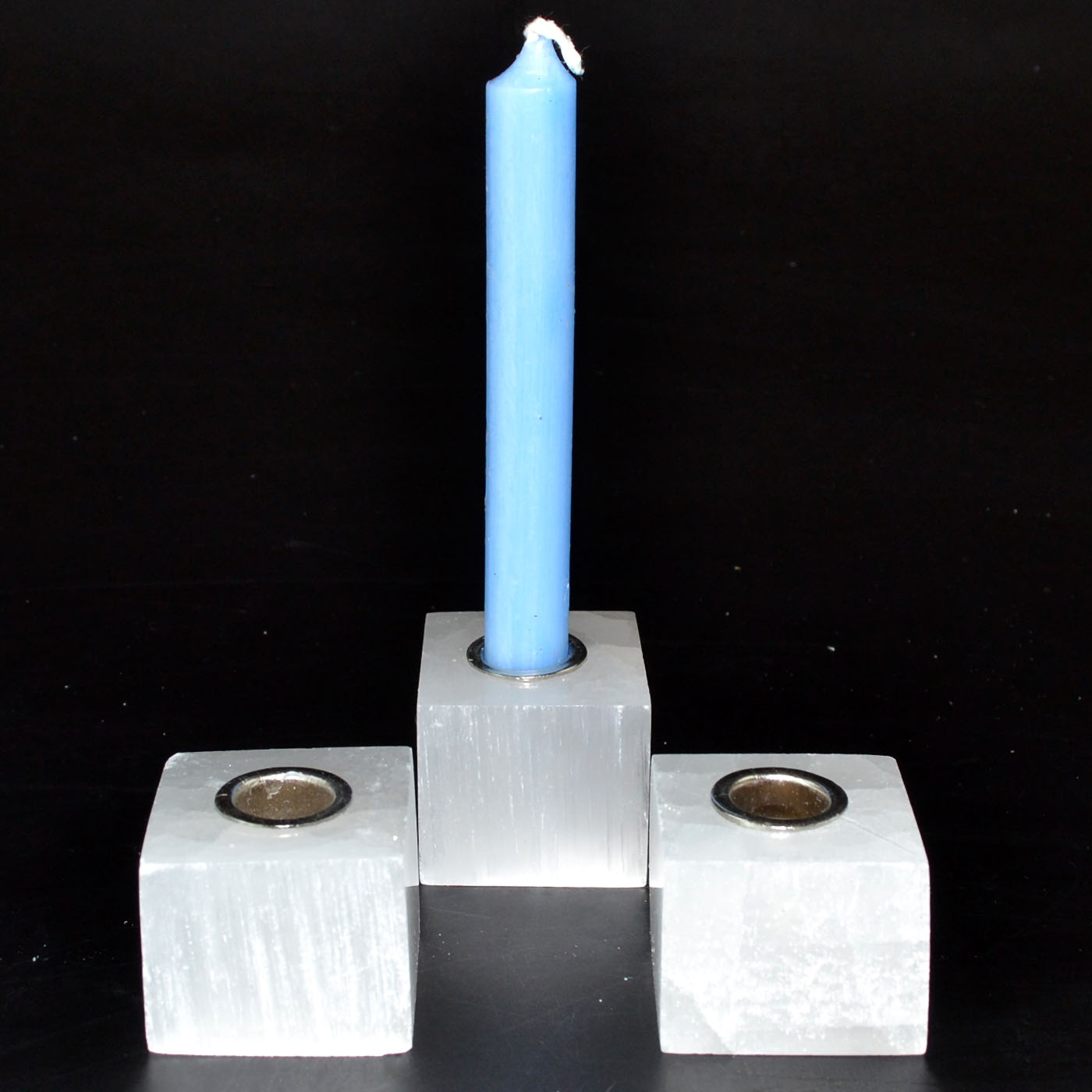 This set of 3 square Selenite chime holders brings a soft, ethereal glow to any space. Carved from natural selenite. 1.25" X 1.25" Selenite is a fragile material and lines are natural occurrence. Candle not included